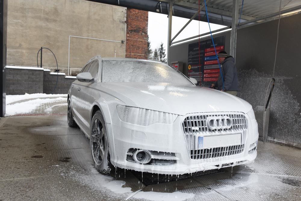 Naneste aktivní pěnu rovnoměrně odspoda nahoru na celou karoserii, pomáhá odstranit nejhrubší špínu z vozidla.
